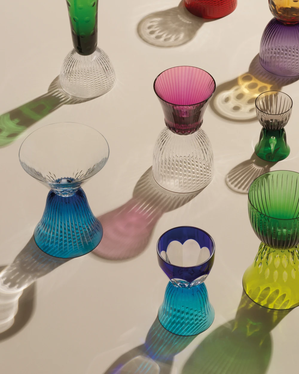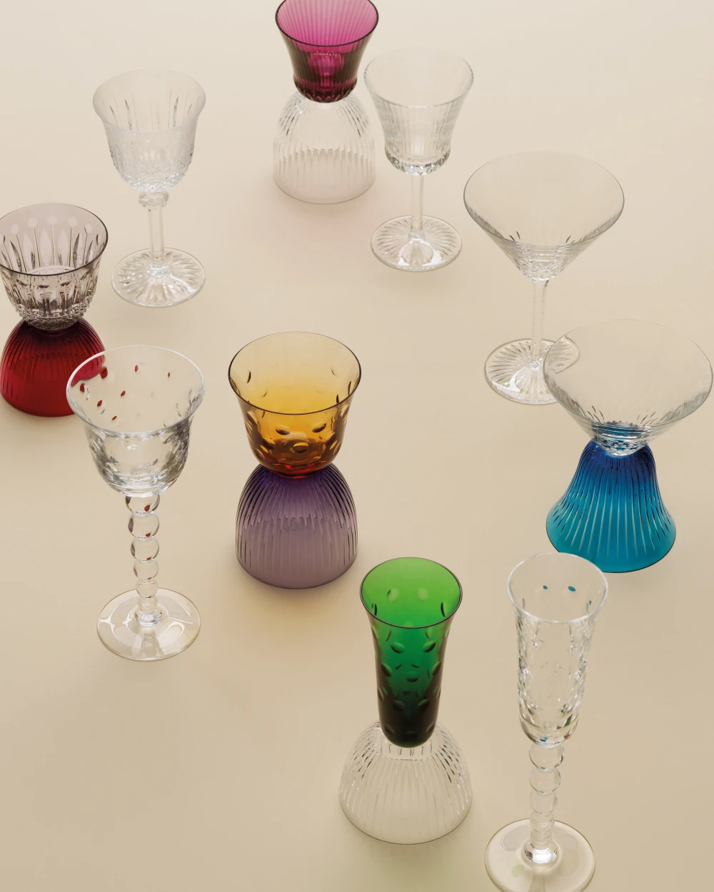 Проект Les Endiablés Saint-Louis — самый безумный в моей практике. Он начался давно, но по-прежнему удивляет новыми сочетаниями. Я взял за основу «парэзон» — часть бокала, в которую наливают жидкость. В объектах особым способом соединяются два таких элемента, а изготовление занимает в пять раз больше времени, чем обычного бокала.
