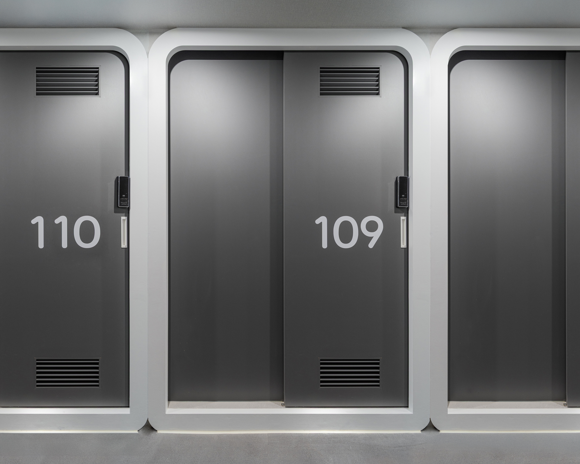 Внутри команда отказалась от широких вестибюлей и просторных номеров в пользу оптимизации пространства. На начальных этапах проекта архитекторы использовали ИИ-инструменты, которые помогли проанализировать пути перемещения гостей и персонала, световые решения, расположение спальных мест и организацию хранения, чтобы в итоге превратить 29 ячеек, выстроенных вдоль центрального коридора, в целостную логичную систему.