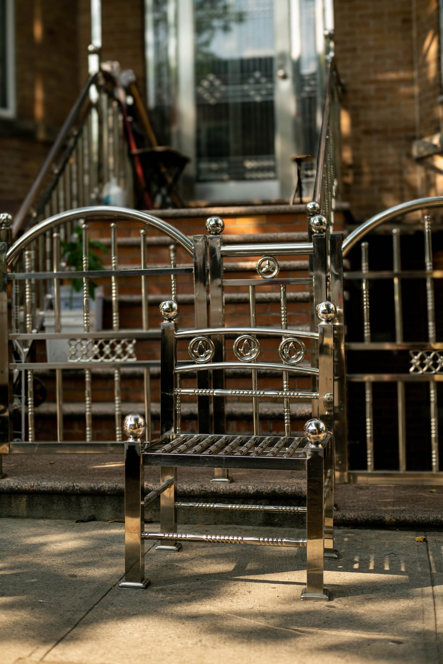 Южнокорейский дизайнер Хан Сынмин представил дизайн-объект White Picket Chair — стул, собранный из элементов нью-йоркских ограждений из нержавеющей стали. В основе конструкции — те же детали, что используются для оград и перил массового производства: полированные основы, металлические тонкие трубки с рельефом и декоративные сферические навершия. Из них формируются изогнутая спинка, сиденье и опоры стула. Проект реализован в Бруклине и напрямую отсылает к визуальному языку городских кварталов, где проживают иммигрантские сообщества.