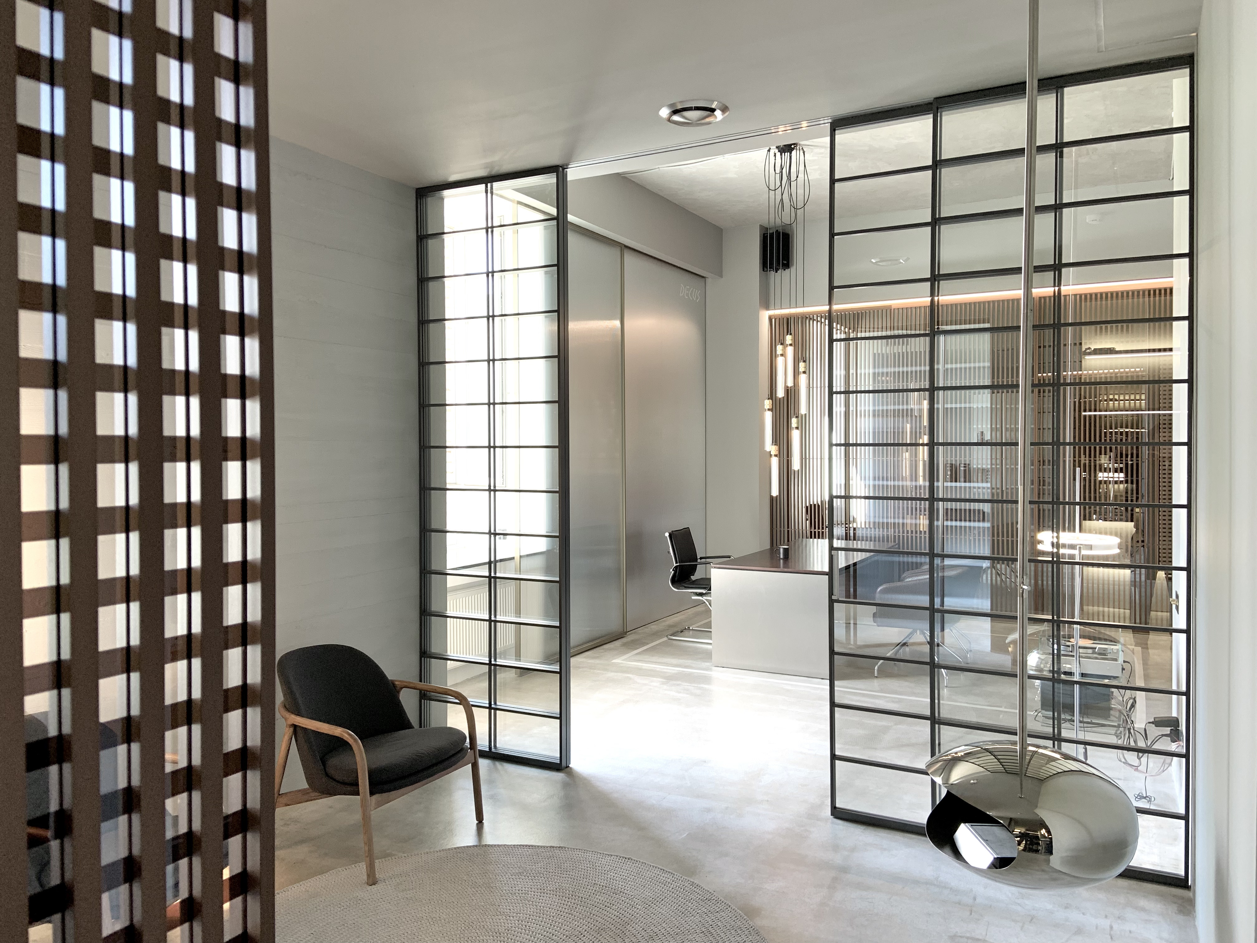 Decus — премиальная корпусная и мягкая мебель плюс светопрозрачные раздвижные перегородки из алюминия и стали: зонирование пространства без потери света.